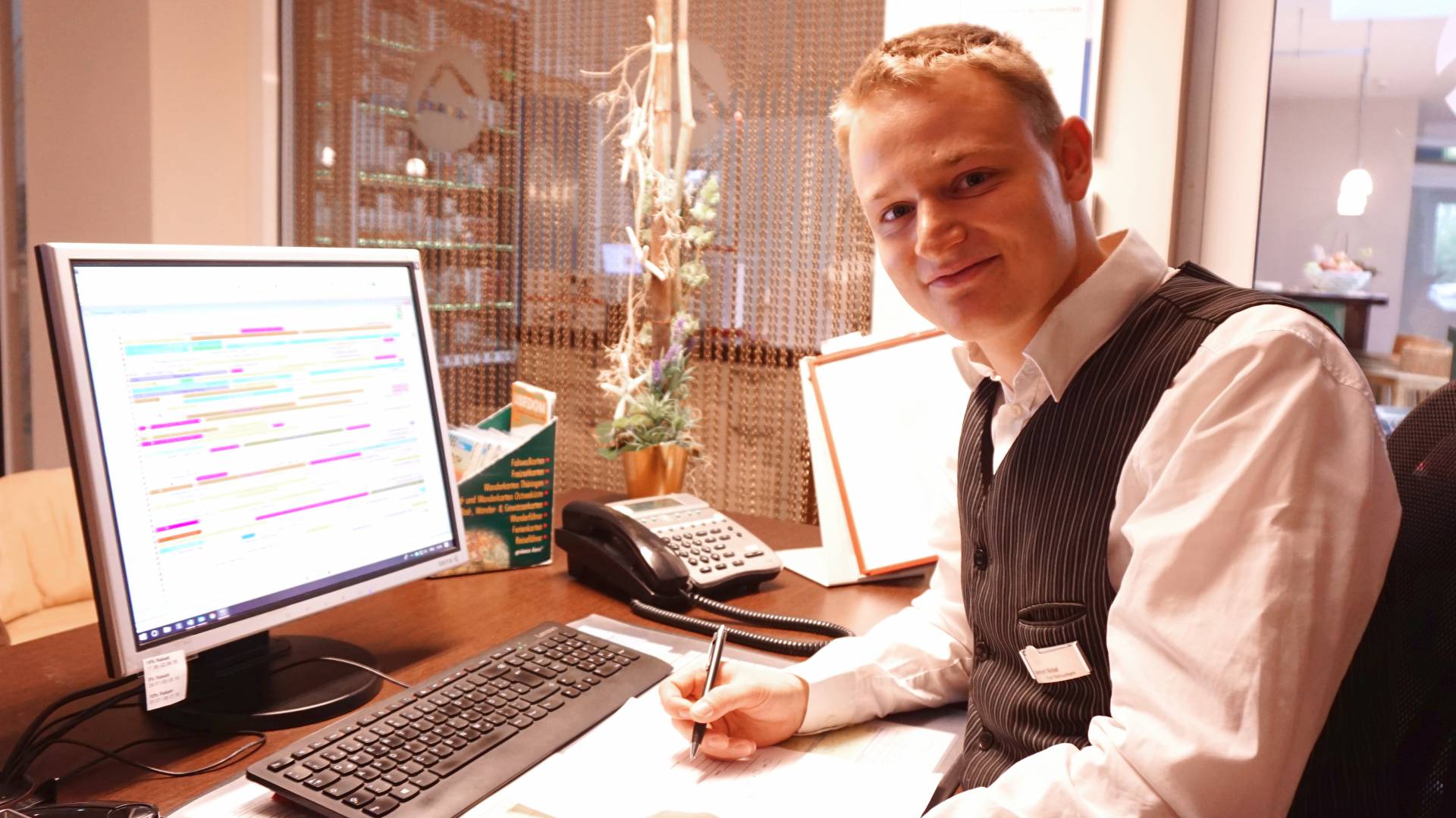 Leenart: Die Buchhaltung ist schon genau meins. Dort habe ich am meisten gelernt und dort will ich auch irgendwann einmal hin. Und die Rezeption hat mir viel Spaß gemacht. Das direkte Arbeiten mit dem Gast. Obwohl ich mich daran erst gewöhnen musste. Aber es ist schon toll, wenn man Gäste, die einen außergewöhnlichen Wunsch haben, begeistern kann.