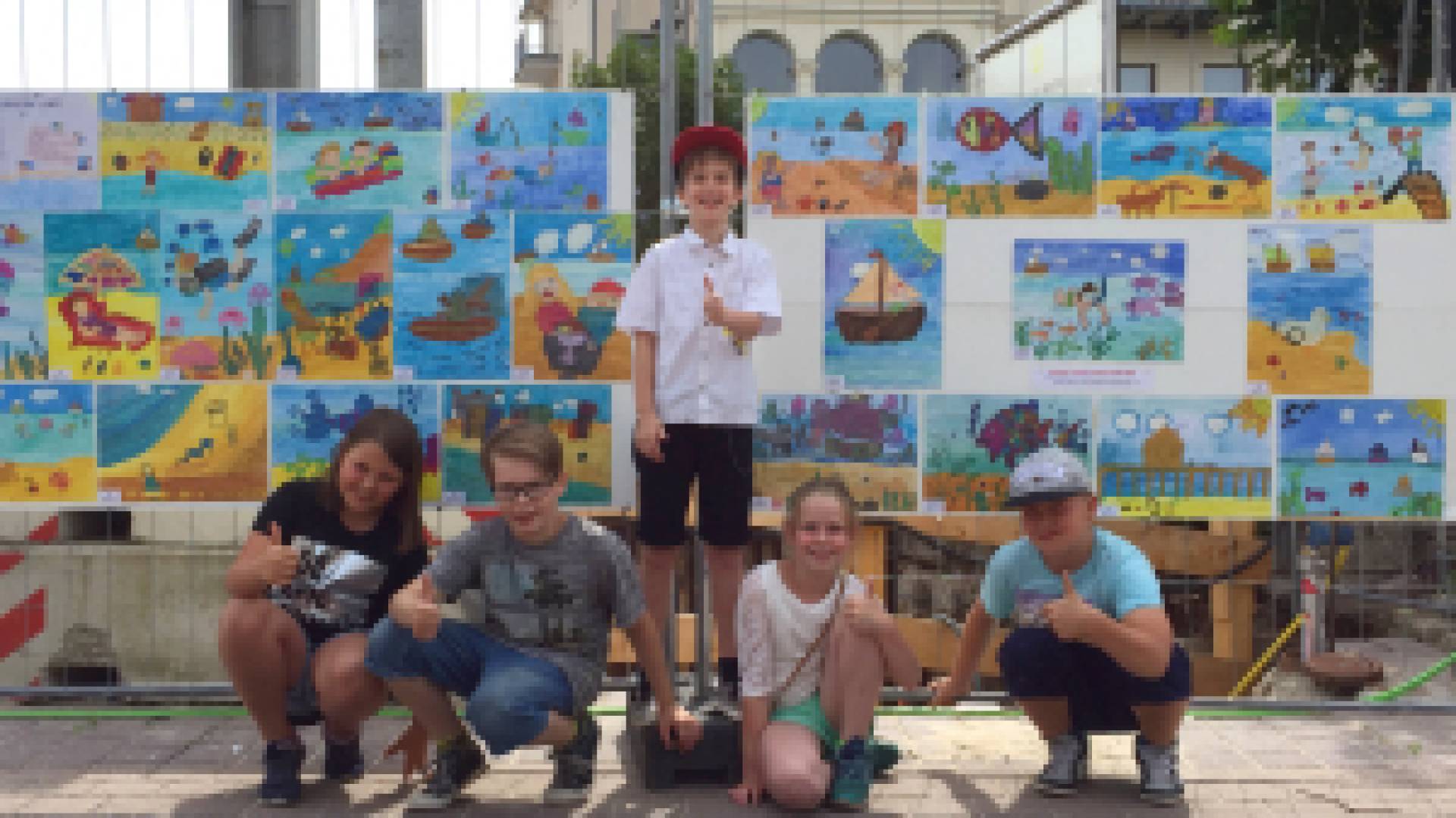 „Sommer, Sonne, Strand und Meer“ – so hieß das Thema, zu dem die Kinder aus unserer Patenklasse, der 3c der Heringsdorfer Grundschule, für das DAS AHLBECK HOTEL & SPA Bilder gemalt haben. Ihre Motivation war es, die Baustelle, auf der derzeit unser DAS AHLBECK JUNIOR entsteht, ein wenig schöner zu gestalten. Sechs Stunden haben sie dafür im Kunst- und Werkunterricht mit ihrer Lehrerin Margit Schirmeister an ihren Kunstwerken gesessen, haben sich Motive ausgedacht und sogar im Internet zum Thema Sommer und Strand recherchiert. Das Ergebnis kann sich sehen lassen. Ausstellungsfläche ist nun der Bauzaun entlang der Ahlbecker Promenade. Zur Übergabe der Kunstwerke an das DAS AHLBECK ist eine kleine Schüler-Delegation samt Klassenlehrerin Birgit Palatzke, Kunstlehrerin Margit Schirmeister und ihrer Referendarin ins Hotel gekommen.